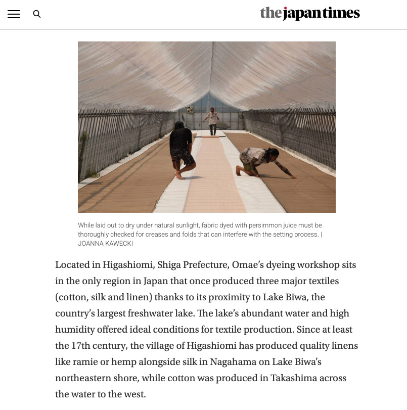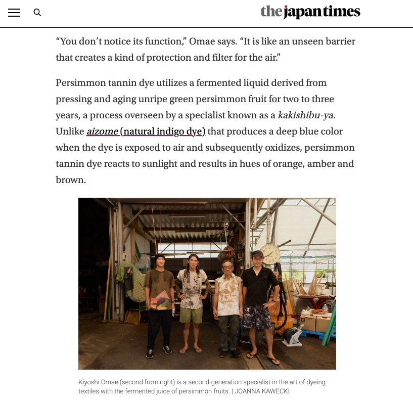 日本で千年以上使われてきた、天然染色技法の魅力と、この技法を次の世代へ渡したい想いを、大前さん・チームのみんなで語ることができました。世界の人たちに、柿渋染の魅力が伝わる取材内容になっています。是非ご覧ください。